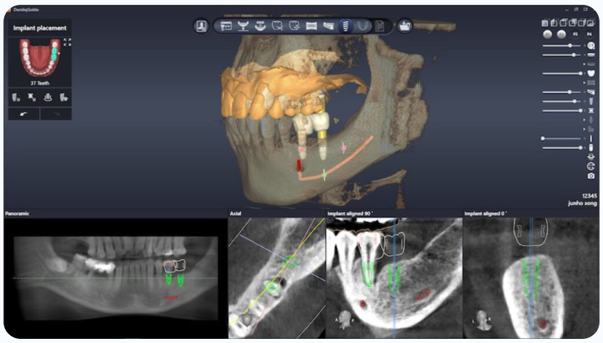Supports fast and accurate implant treatment planning, virtual simulation and surgical guide design using high quality 3D imaging, high accuracy alignment, and high performance of digital design.